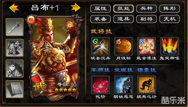 ④完成上述步骤,此时的你最少已经有两个五星了(v1送孙权,开始阶段还是很给力的),将城开发到19级。以张角为军师带双五星开始推图。一路无话直到洛阳。早期银币较缺的话,就要让五星将在八级九级时,分别学一次兵种和阵型。往后的先不要学,避免银币不够,无法升级主城。这个过程中,你会招到平民神武将吕布(可以一直培养的五星之一)。