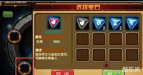 5、装备打孔后,选择宝石孔,在弹出的面板中选择你要镶嵌的宝石,点击确定。