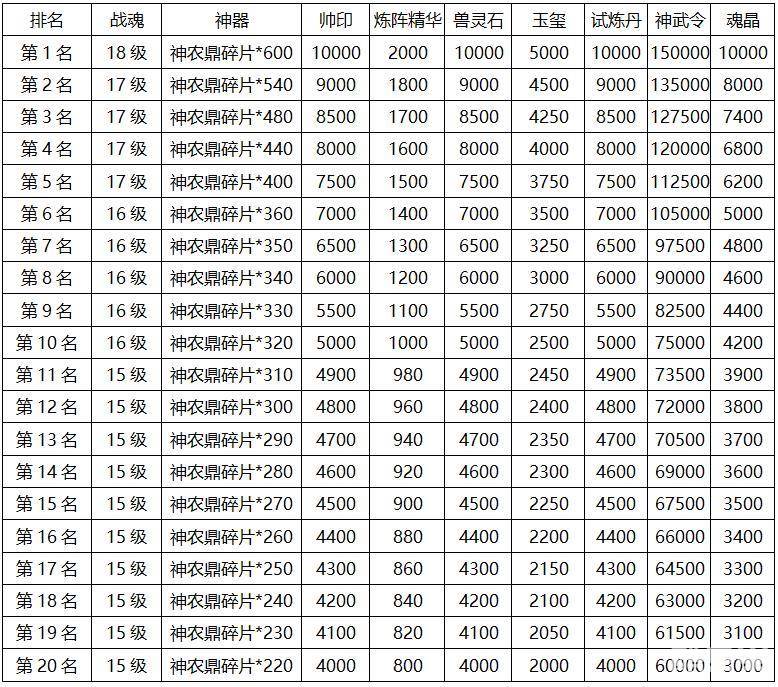 (6)活动期间,累计消费达到100w金币,无论排行名次,均可获得对应排名奖励中双倍数量的战魂奖励;(如小明在排行榜活动中累计消费达到100w金币,最终排名为第三名,则最终奖励会额外获得1个17级战魂)