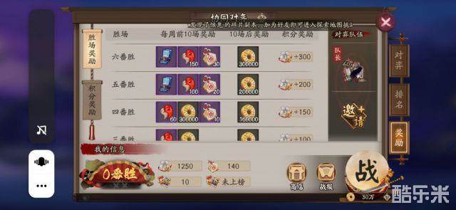 新协同每周前10轮每达成一次6番胜都有1蓝票150勾玉,10轮之后每次6番胜只给金币。每次6番胜都会给30荣誉,在荣誉商店可以兑换皮肤券(每张10荣誉)。