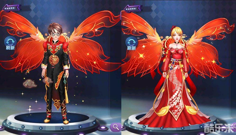 在红火新春刚刚拉开帷幕之际,《劲舞团》手游也随之推出了喜庆主题的全新蛋装。【天赐良缘·红火】的男女服饰分别采用了不同色调,男生的墨色唐装结合发尾长辫,充满个性;女生的金发搭配赤色鱼尾长裙,仙气飘飘,两者身旁渐隐浮现的祥云更是美轮美奂。