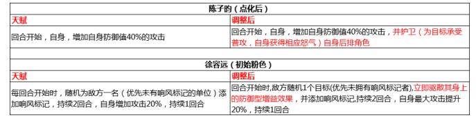 1)陈子昀、徐容远(初始粉色)技能优化调整;