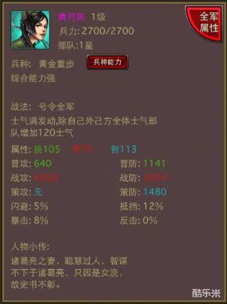 如果你有二个及以上的战法武将,军仪·黄月英绝对是你的第一选择,完全可以放弃布阵考虑的鼓将了,一个武将轻轻松松击败对手,非常的厉害噢!希望大家能够对黄月英有一定的了解!