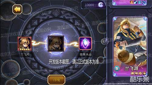 与其他英雄不同,兰飞鸿属于《厨神小当家》联动角色:当玩家首次获取时,得到黄5星英雄兰飞鸿,还有一块能量水晶。