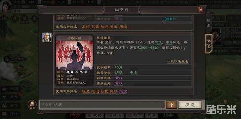 玩家们拆解黄权就能获得这个技能了,作为一个准备战法还是比较强力的,效果是附加中毒还有灼烧的效果,虽然不能直接造成伤害,但是在谋略队伍里却非常契合哦。