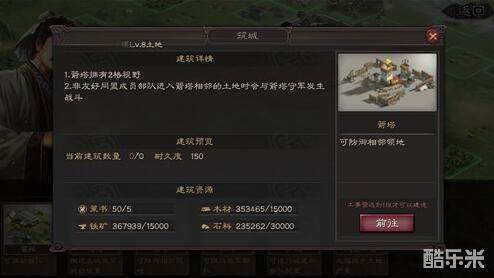 相比于拒马满级箭塔的困难程度要直线上升哦,虽然说是用主力部队效率会比较高,但是不推荐玩家们用一队或是二队来拆箭塔,因为箭塔的守军兵力值才2.1万,我们安排上一批正常的主力部队就可以了。