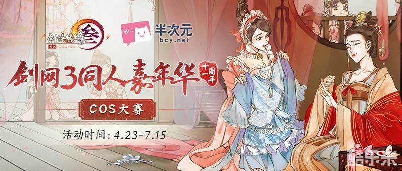 《剑网3》携手半次元,于4月23日-7月15日期间发起《剑网3》同人COS大赛,更有同人典藏集、十一周年同人嘉年华限定激活码礼包(内含《剑网3》十一周年同人嘉年华定制特效背部挂件·青鸾来仪和《剑网3:指尖江湖》同人嘉年华定制互动趣物·青谷流芳)、《剑网3》十一周年纪念礼品等你来拿!获奖Coser还有机会参与官方COS宣传拍摄以及担任官方周边模特等深度合作!