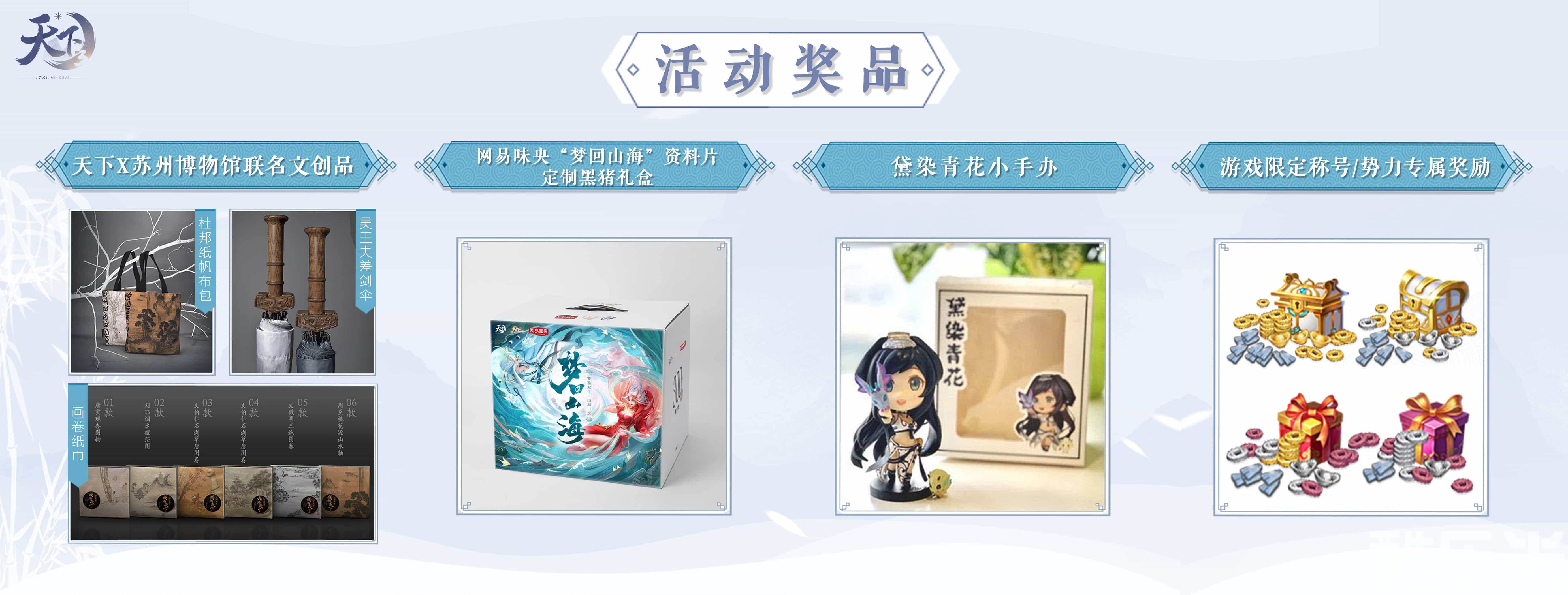 比赛优胜者将可赢得金色限定活动称号、网易味央黑猪定制资料片礼盒、天下×苏博联名文创品等实体周边礼包;代表势力赛道的获奖者还将为势力赢得定制荣誉称号,并获得专属势力物资;各赛道第一名的菜品还会被植入“大荒美食谱”任务当中,持续整整一个月哦!