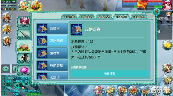 特技描述:为己方所有队员恢复气血量=气血上限的25%,但是不超过等级*12