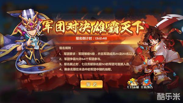 3、报名截止时,七日贡献排名前50的军团可直接入选;