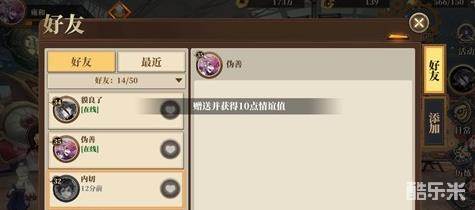 每天我们都是可以赠送好友来获得10点的情谊值,对方同样也是会获得10点的情谊值,所以我们可以利用互相赠送的方式来获得更多的情谊值。那么我们可以通过这样的方式来速刷情谊值,一般情况下一天是可以获得大概有200点的情谊值的,所以说还是非常快就能获得很多情谊值的。