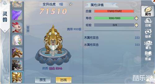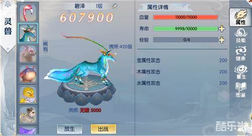 稀有灵兽有:火烈鸟、碧泽、九尾狐、鬼蝠、大黄鸭、玄猫、魔鬼鱼、玉兔、羊驼等。这类灵兽的攻击力非凡,若是能让它协助出战定会产生不俗的伤害,并且血量、寿命、属性攻击比前者提高不少,十分适合战斗,其资质无暇是最好的印证。