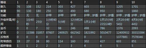 武器实验室升级表格: