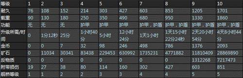 船舰实验室升级表格: