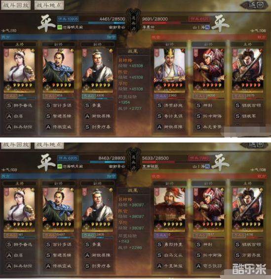 这套群弓只用到了两个s战法,而且刮骨也是可以换成a战法的,配置十分平民,战斗力呢大家看战报里面都有了,使用方法基本就是只能按着弓和枪打,骑兵盾兵就别去碰了。