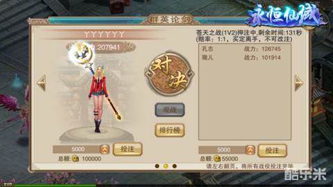 没有参加的小伙伴,可以在旁观战,猜测胜负结果。所有玩家都可以对胜负进行下注,参赛者也可以。每场战斗开始前,可对所有场次进行铜钱下注,若当场下注的对象获胜,则获得两倍的奖励,失败则扣除下注金额。