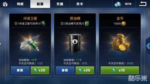 除了免费的获取途径之外,能源商店也提供让玩家直接购买原油桶,20钻石=1原油桶可获得25原油,每日仅限购买次数为20次。如果要冲击等级排行榜,原油不够可以考虑直接购买哦!