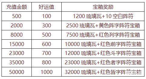 1、活动期间通过充值金币可获得好运值,好运值达到宝箱领取条件,即可打开宝箱领取其中奖励;
