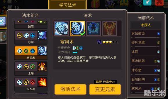 记得带单元素获得更多蓝量的饰品,进入后,直接等蓝量满两格,放寒风术,再用单元素补伤害。