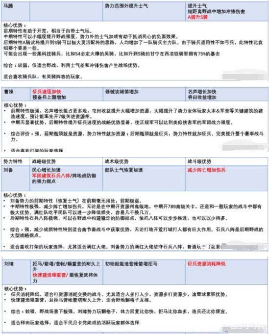 马腾势力:野战强,远征强,骑兵强。但是相比上面的几家还是弱了些。