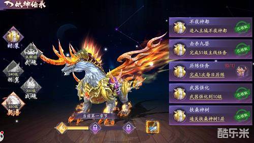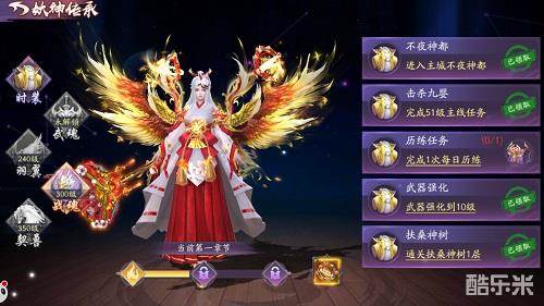 妖神传承是一种养成玩法,由时装、武魂、羽翼、战魂、契兽,5个功能组成。玩家升到指定等级,接取对应功能的解锁任务,完成任务就可激活功能效果,改变角色外观,大幅提升战斗力。