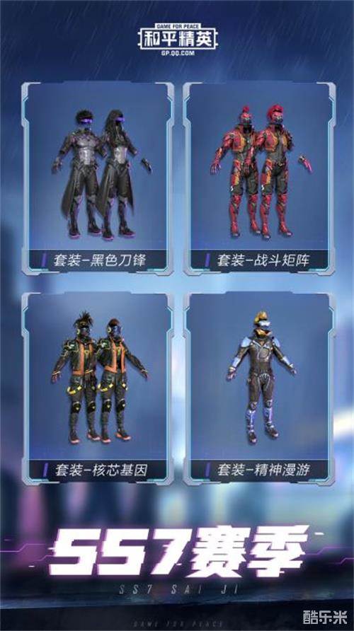 本次SS7赛季以赛博朋克为主题,在赛季手册主题界面尽享赛博元素。酷炫流彩未来科幻感十足的赛博风格将给特种兵带来不一样的视觉冲击,激励着各位特种兵发起新赛季战神段位的冲击,共鸣内心澎湃的竞技斗志,一起去追逐心中的冠军梦想!同时,通过升级赛季手册,特种兵们将能够解锁获得黑色刀锋、战斗矩阵、核芯基因和精神漫游四套充满赛博元素的服饰套装,走进未来的朋克时代!