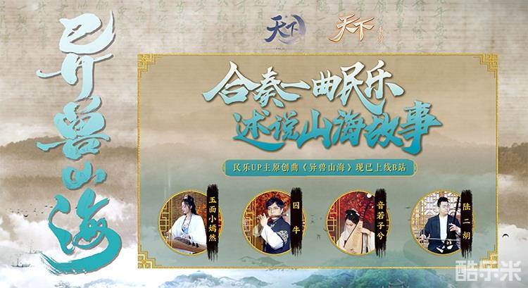 “央视网”官方微博点评!《天下》与多位知名民乐UP主跨界合作曲目《异兽山海》近日发布。“央视网”评论表示,四位民乐UP主演奏的原创民乐曲目,以音乐为载体,通过想象力和旋律的结合,隔空演绎出了一个奇妙而绚烂的《山海经》异兽篇章。