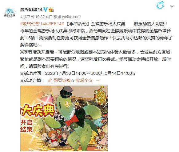 目前,《最终幻想14》官方已经宣布:2020年的金碟游乐场大庆典即将来临,活动期间在金碟游乐场中获得的金碟币增长到1.5倍,完成活动的玩家还可以获得全新情感动作。以下为此次官方公开的相关细节。