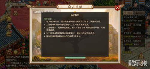游戏开始后,力量值与精准度会持续波动,道友们需要同时控制力道和精准度,当力量与精准度越接近平衡时,挥下斧头,则完成度最高。