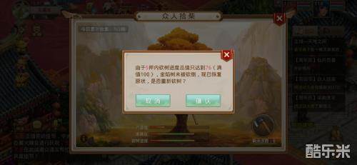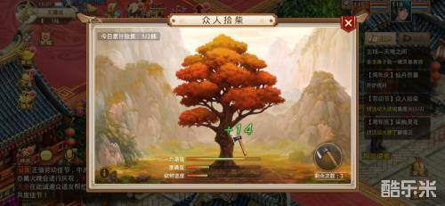 道友们每次最多砍五斧,在5次机会内砍树进度到达100,就可以获得1捆金焰树木材;如果没能达到100,金焰树就会复原,道友需要重新砍伐。