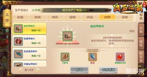小到日常杂物大到武器神兵,只要级别够,材料足,统统都给你造出来!