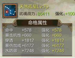 ² 70级命格“天煞孤星”,该命格拥有穿透、暴伤两种核心属性,强化部分属性为命格槽100级效果;该命格可合成。