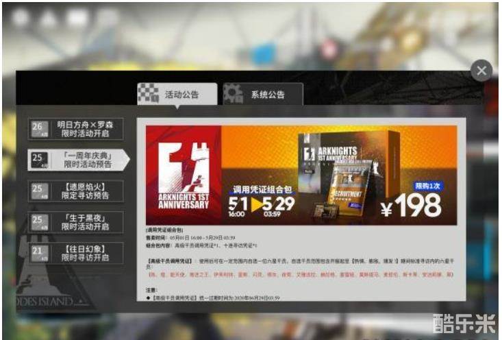 组合包内容:高级干员调用凭证*1、十连寻访凭证*1