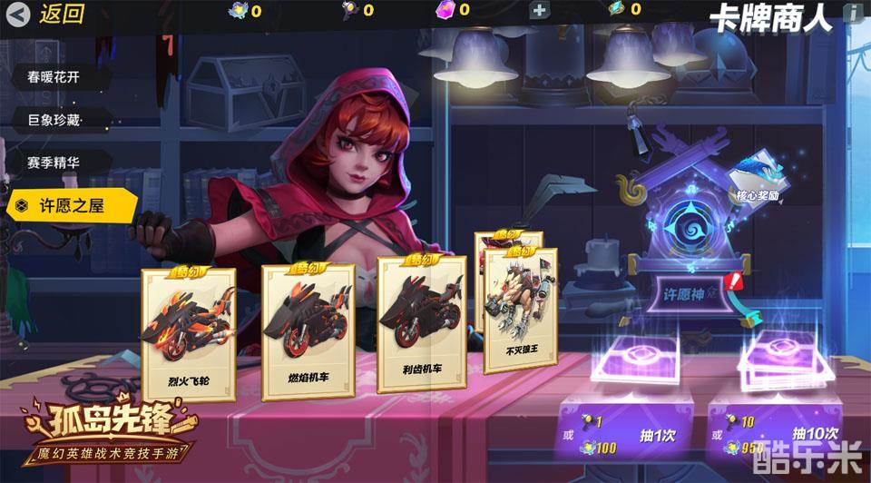 在许愿之屋中,玩家将通过“翻卡”获得外观道具。每一轮单次抽卡系统会向玩家展现7张外观卡牌的品质,玩家可以免费翻开其中一张。如果玩家对剩余6张卡牌的品质不满意,还可以随时选择“弃牌”来重置抽卡,收获高品质外观的机率大大增加。