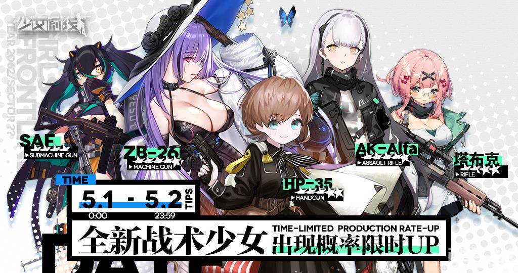 全新人形出现概率限时提升即将开启!5月1日0:00~5月2日23:59期间,五名全新战术人形在人形制造中出现的概率将会获得提升!五一小长假,迎接新到来的队友吧!