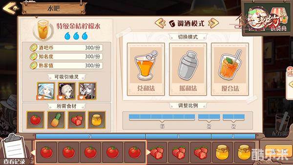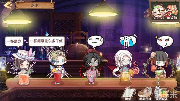 深夜水吧功能开启后,将分为筹备和营业两个阶段。每天0:00~20:59为筹备阶段,御侍大人可在筹备阶段进行饮品调制和上架。调制饮品的食材可从水吧市场中购买,使用正确的手法和食材调制时,根据所加食材数量、顺序和配比的不同,还能调制出不同星级的饮品。为了保证饮品的新鲜度,每日营业开始时,未上架的饮品会全部作废,御侍大人一定要及时将饮品上架至清单中。