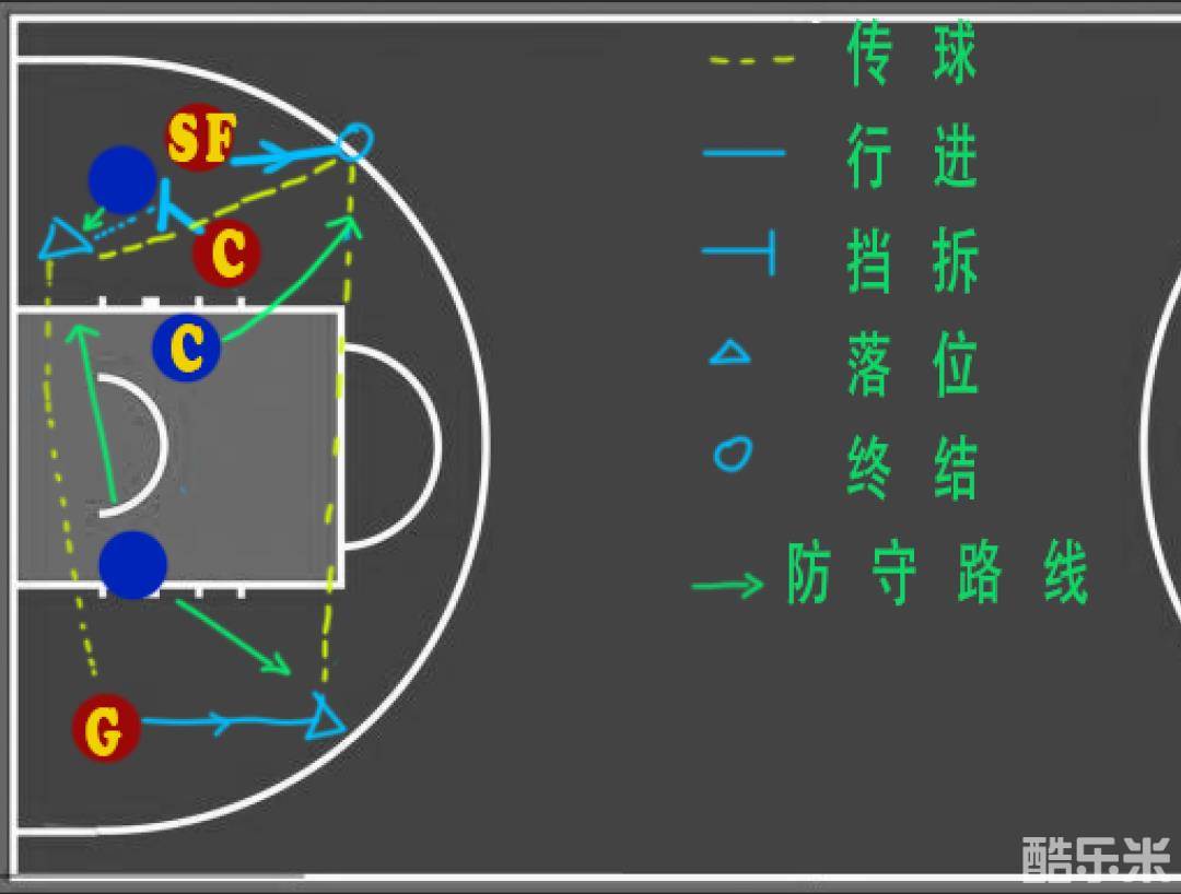 战术一:进攻先以东77或大胡子为第一进攻发起点,小巨人配合挡拆,挡掉最具跟防能力的防守者(例如哈莉字母哥阿图)。如此大胡子、东77都会有出手机会,此时打3要坚决。如果对方c换防,小巨人要迅速拉开,东77与大胡子适当拉开空间后接后撤投篮,此时对方c是无法跟上的。