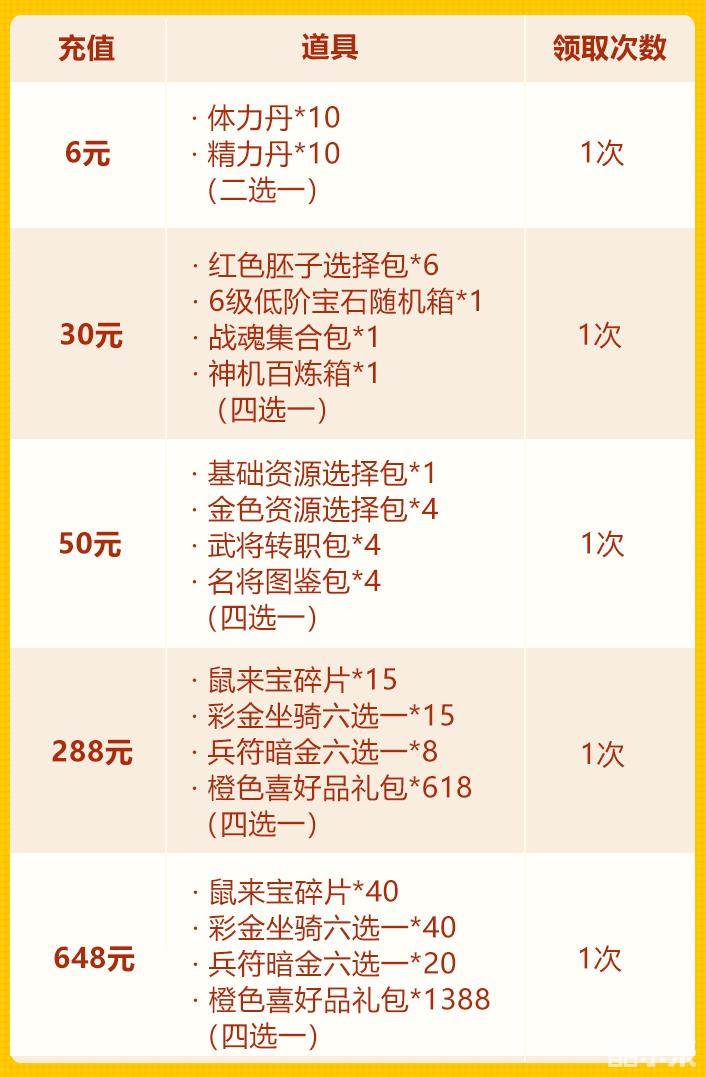 在活动期间,少年们充值可获得玄女琉金二选一、彩金坐骑六选一、兵符暗金六选一、阵法养成包、劳动节勋章资源: