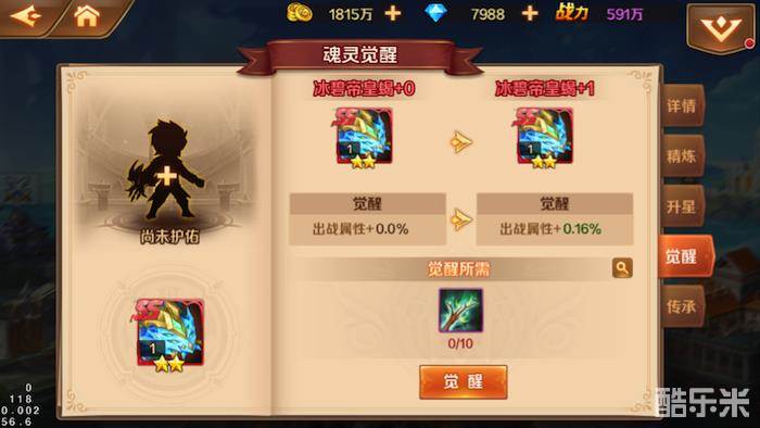魂灵觉醒则是新增的养成系统,S和SS魂灵都会有哦。消耗觉醒神木,来提突破觉醒等级,觉醒等级增加额外的魂灵出战属性继承。