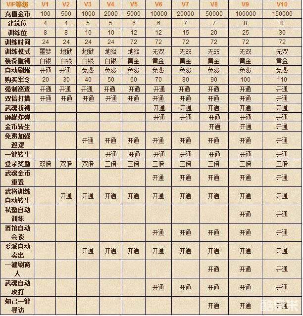 100000 | 5500 | 82500 | 战斗力+5% | 所需银贯在累计充值10万金币档可得 |