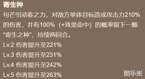 C、三技能:一者提供输出伤害、二者提供概率缠绕效果。同时,若目标拥有寄生之种,那么必然缠绕;