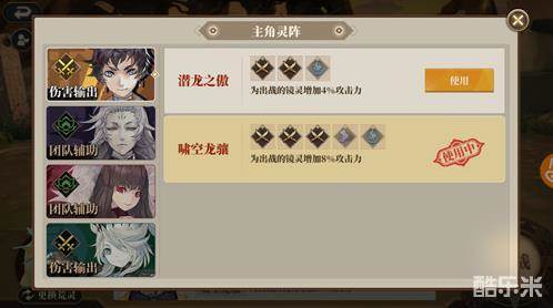 1、黄龙:一位自带输出BUFF的主角,个体兼顾有不俗的伤害,可以适应单体和群体作战。同时,搭配阵容后可以为所有的境灵提供百分比的攻击力,进一步增加团队的输出量,是偏向于爆发类型的境灵,阵容搭配推荐以输出为主、续航为辅;