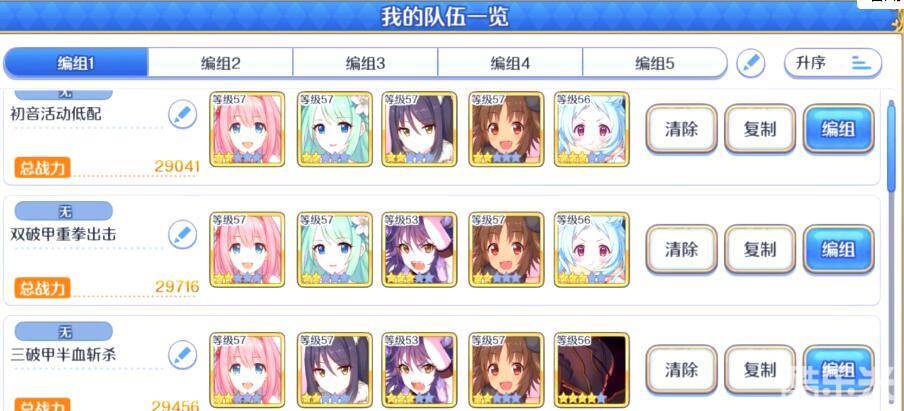 玩家们可以看到三个不同的配队,针对三种不同的情况。
