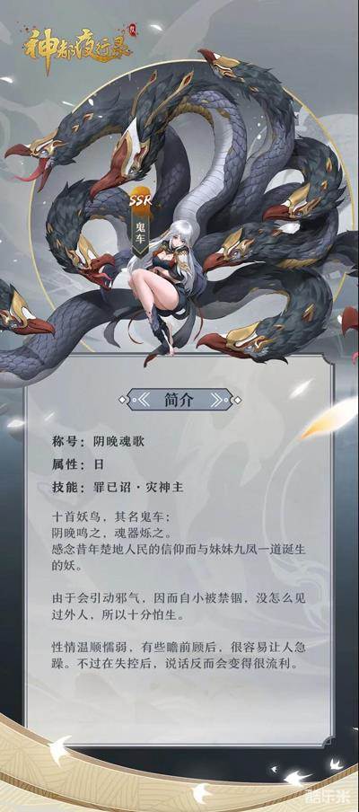 《神都夜行录》全新SSR妖灵“鬼车”全解析:阴晚辕鸣奏魂歌