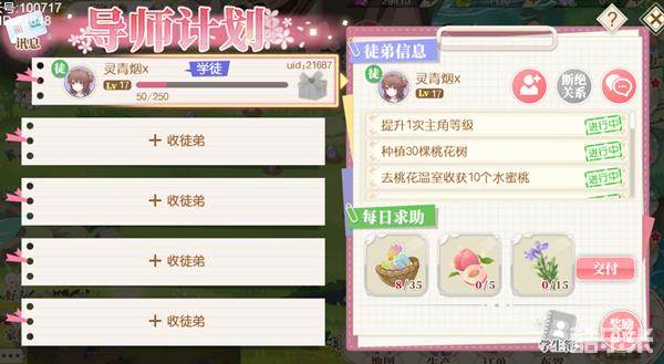 成为学生后,只要努力完成课程目标,就能获得毕业礼哟!学生每天还可以向导师请求物资帮助,当导师交付每日物资后,也会为学生增加成长值哟!