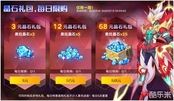 活动内容:奥拉星上新每日特惠--超值奥拉晶石直购礼包,每日每个档位仅限购买1次!每日特惠活动仅限一周哦!(在该活动中购买星币不算入累充进度)