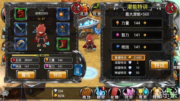 这个就是我们唯一真“属性”提升的关键点,点开特训后,会看到我们的当前可以提升的最大潜力值,也可以看到几种特训的方式。这里有几个关联的点要说一下了。这里有一个小技巧:当你的最大潜力值和当前的潜力值差距越大,特训时候出现减属性的次数就相对越少哦。