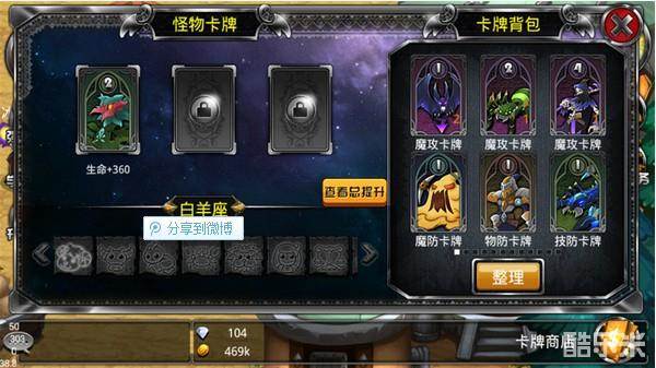小提示:在这里大家会发现每一个星座都会有3个插槽,这里不要吝啬水晶,最少全部开放第二插槽吧,因为所有星座的卡牌属性都可以加在人物属性上哦。