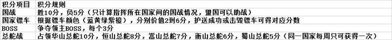 开区7到30天,指挥国+盟国,每天完成各项积分竞技项目,为本国和盟国赢取积分,累积一个月,积分从高到低的国家和盟国全体国民,均可获得丰厚奖励。指挥国家+盟国积分项目如下: