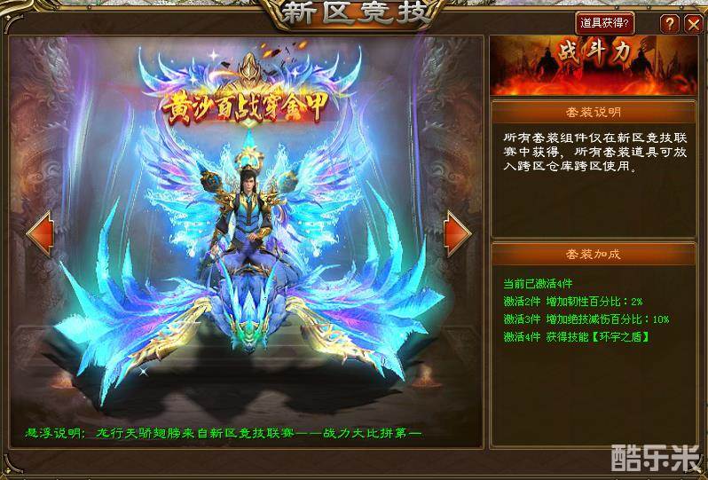 2、主题竞技周,每周一个重点竞技比赛,送超高属性新区至尊竞技限量套装,奖励还能跨区使用。